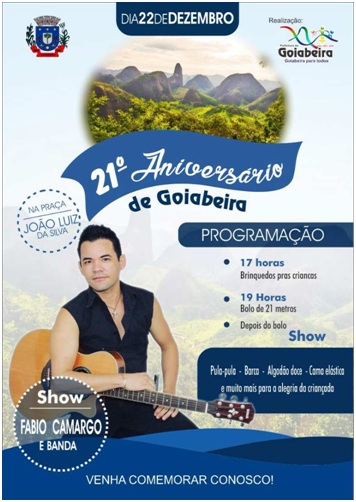 Eventos Parceiros 21.º ANIVERSÁRIO DE GOIABEIRA – VENHA COMEMORAR CONOSCO 7 de dezembro de 2017 admin 0 Comentário