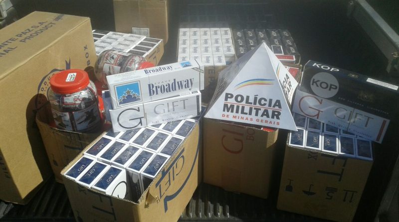 Durante a abordagem foram encontrados na carroceria do veículo 295 pacotes de cigarro oriundos do Paraguai, contendo 20 maços cada totalizando 5.900 maços. Indagado o condutor disse não possuir nota fiscal da mercadoria e que tinha mais mercadoria em seu estabelecimento comercial.