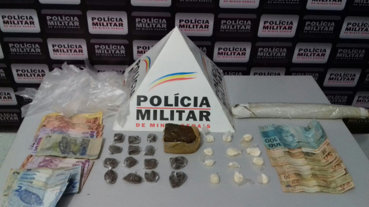 Na casa do suspeito Matheus A. B. S., 23, os militares encontraram dentro do guarda roupas, R$149,00, uma sacola contendo 14 buchas de maconha, várias sacolas de chup-chup utilizadas para embalar drogas, um rolo de filme plástico, também utilizado para embalar drogas.