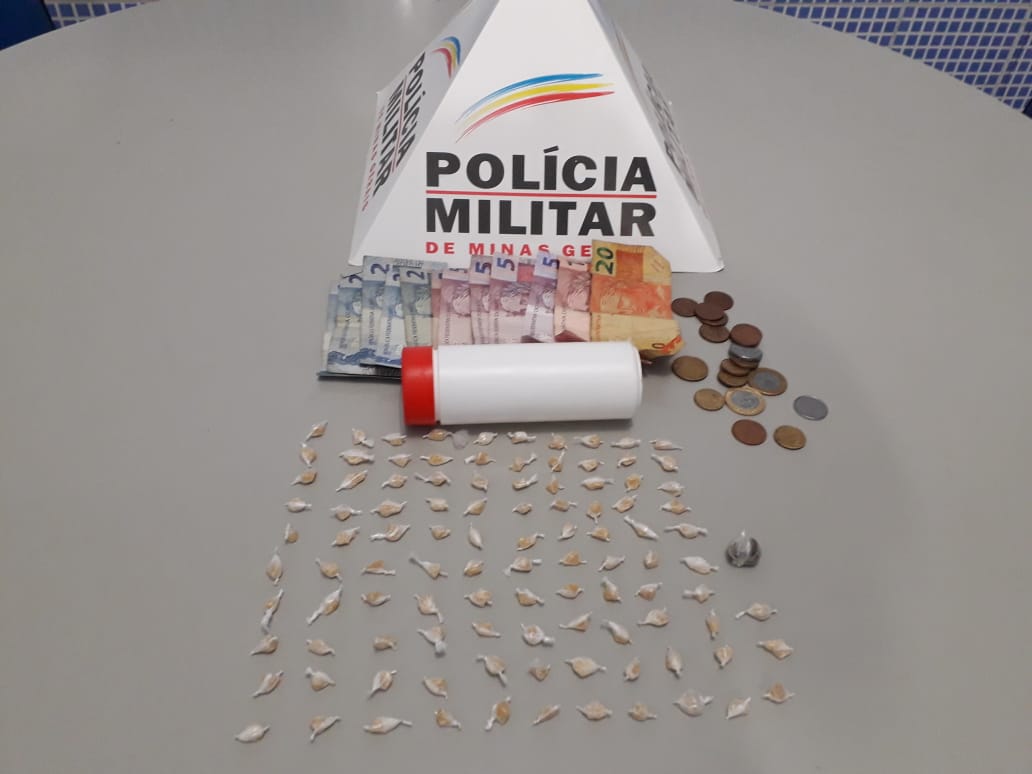 Os militares ainda filmaram um suspeito escondendo um pote branco com tampa vermelha em um arbusto, a equipe abordou o suspeito e deslocou até o local onde encontrou o referido pote, dentro dele haviam 103 pedras de crack.