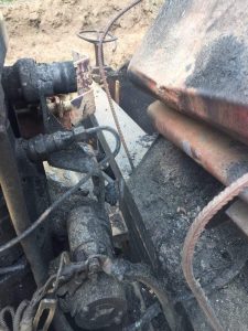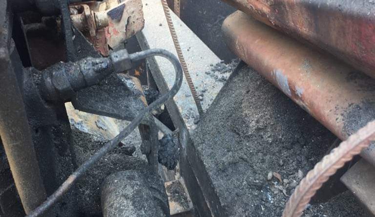 A mesa acabadora asfáltica, bem público, ficou toda danificada, e acabou por interromper os trabalhos que estão sendo realizados.
