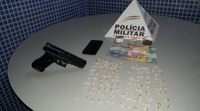 A polícia apreendeu o adolescente em flagrante e encaminhou os envolvidos juntamente com as drogas e o simulacro de arma para a Delegacia de Polícia.
