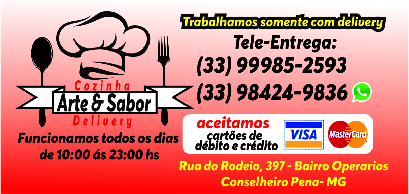 Parceiros COZINHA ARTE & SABOR – DELIVERY 1 de dezembro de 201916 de dezembro de 2019 admin 0 Comentário