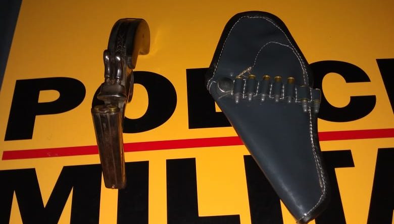 Os militares interceptaram o condutor, C. C. E. O., 23, e quando em busca pessoal, foi encontrado em sua cintura, uma garrucha calibre .22, municiada com 02 cartuchos intactos e mais 07 cartuchos no bolso da jaqueta.