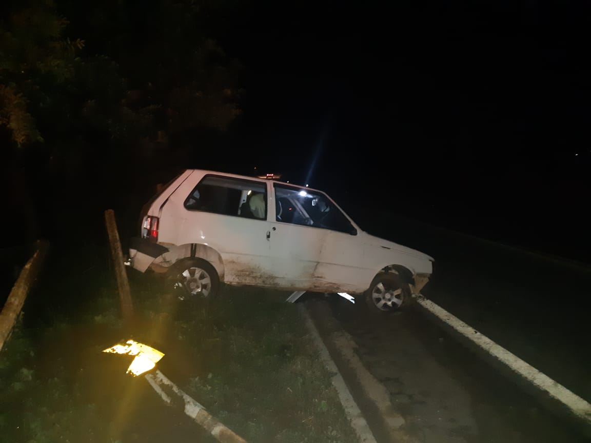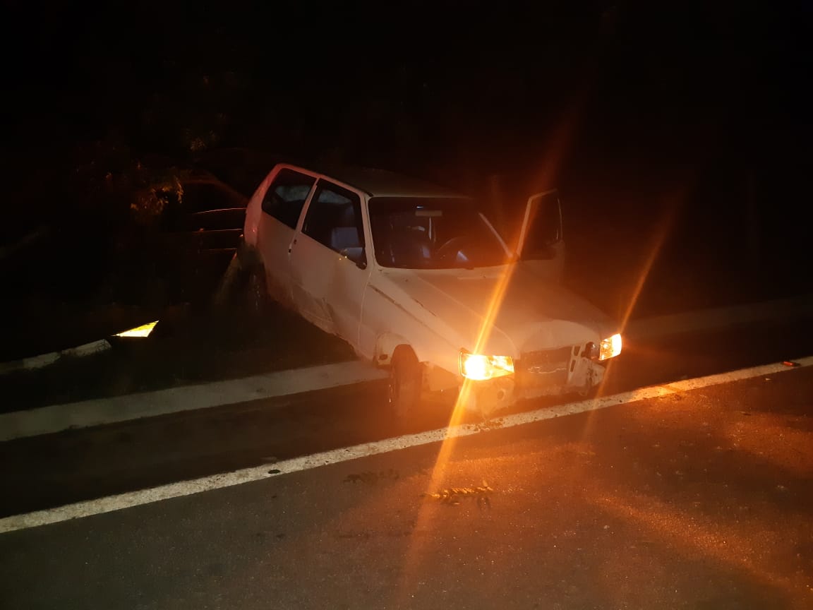 Quando os militares chegaram ao local encontraram o Fiat Uno, que conduzido por Fernando C. N., 34, estava todo amassado às margens da Rodovia.
