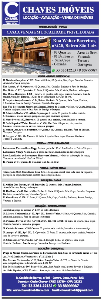 Parceiros OFERTAS DE IMÓVEIS NA CHAVES IMÓVEIS – LOCAÇÃO, AVALIAÇÃO, VENDA DE IMÓVEIS 7 de outubro de 2020 admin 0 Comentário