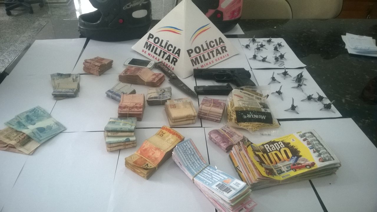 Os militares recuperam R$ 14.200,0, uma réplica de pistola, um revólver cal. 22, uma moto furtada que eles estavam usando.