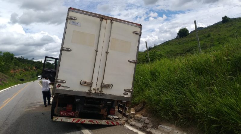 EIXO SE SOLTA DE CAMINHÃO QUE SEM CONTROLE BATE EM BARRANCO NA BR 259
