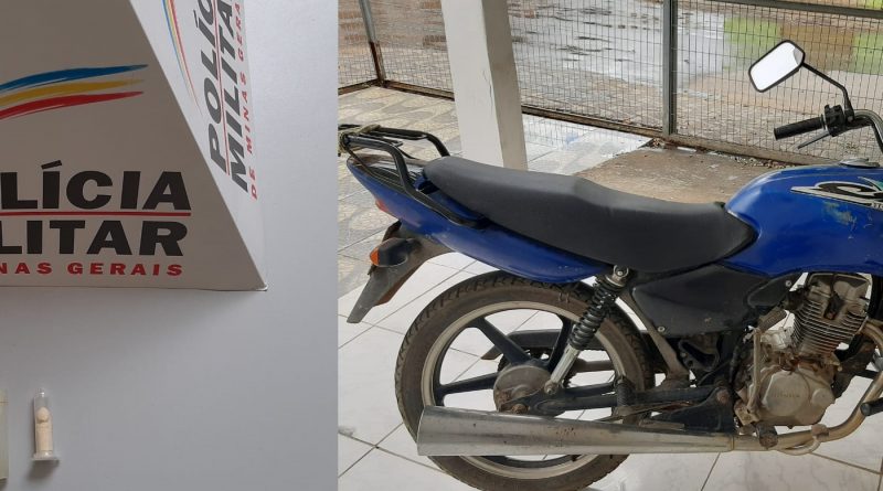 Policiais Militares faziam uma batida policial pela localidade quando avistaram uma condutor em uma motocicleta, que levantou suspeita. Os policiais faziam o acompanhamento da moto, quando o condutor entrou para um local conhecido como “morro dos sem terra”. Ao avistarem a moto, os policiais conseguiram abordar o condutor A. P. O., 43, e durante uma busca pessoal acabam por encontrar no seu bolso, 1 pino de cocaína. O condutor que é inabilitado, foi conduzido para a Delegacia e a motocicleta foi removida pelo guincho.