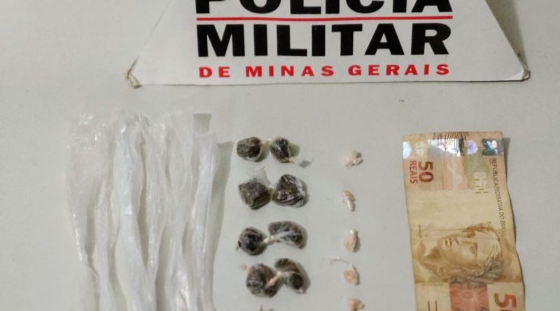 O próprio suspeito recebeu os militares em sua casa, e durante buscas e averiguações, foi encontrado uma sacola de chup chup contendo 6 pedras de crack, localizada em um vaso de planta próximo ao portão de entrada, 9 buchas de maconha prontas para comercialização no buraco de um tijolo e com o autor, foi localizado r$ 50,00 que os militares acreditam ser produto da venda de drogas.