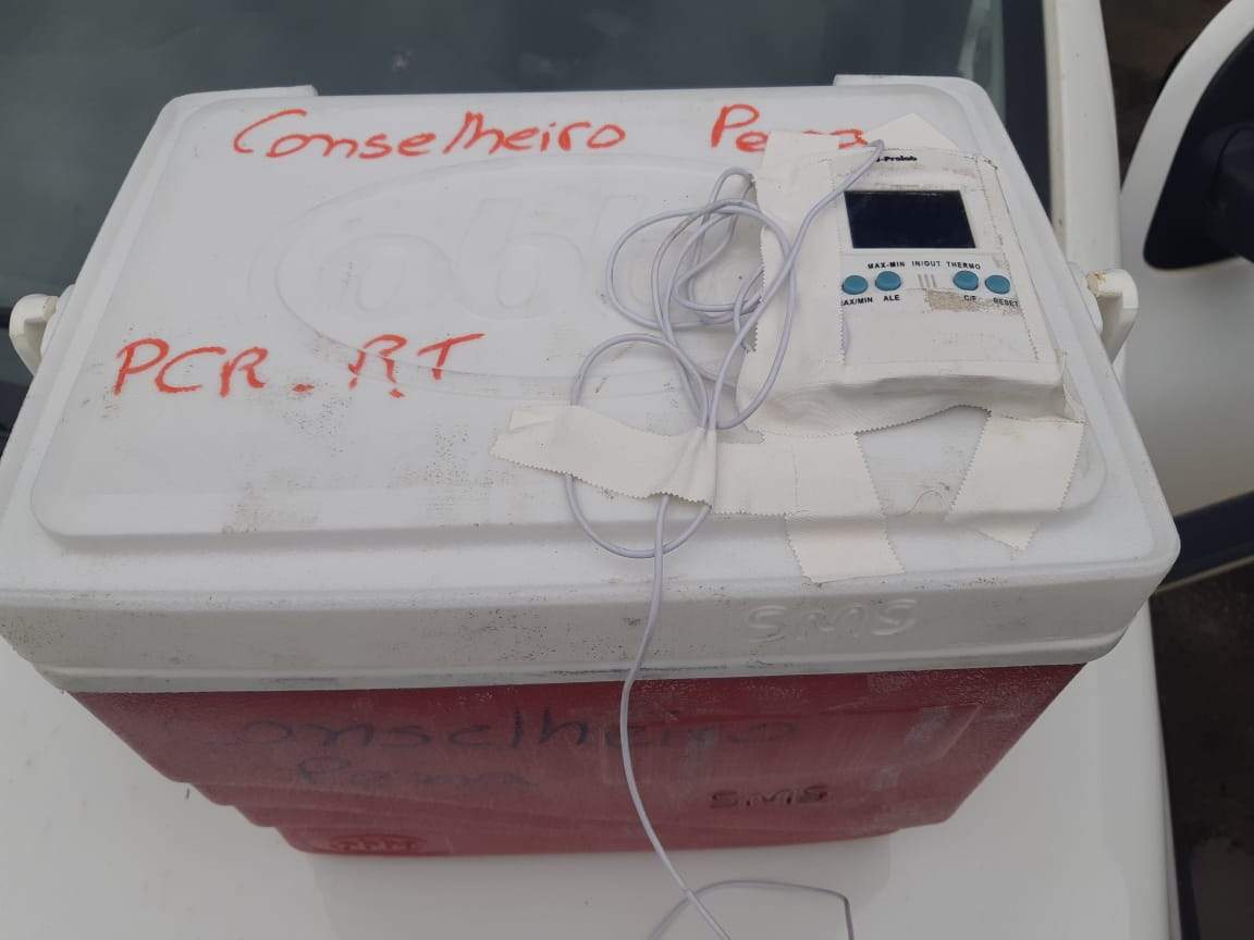 Dentro do carro, os policiais encontraram uma caixa térmica, com medidor de temperatura, que seria utilizada para o armazenamento de teste de covid-19.