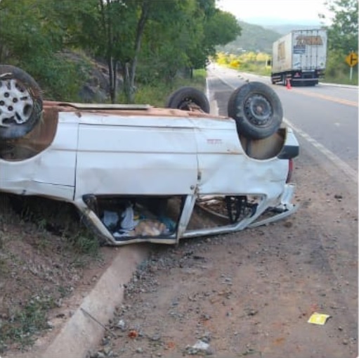 ACIDENTE NA BR-259 – FIAT UNO CAPOTA EM CURVA PRÓXIMO A RESPLENDOR