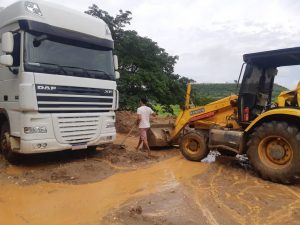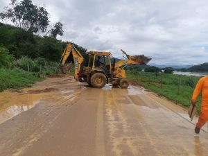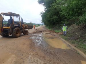 CHUVAS FORTES NA REGIÃO: VÁRIAS BARREIRAS CAIRAM NA BR 259- TRÂNSITO FICOU INTERROMPIDO PARCIALMENTE E LIMPEZA DUROU A NOITE E MANHÃ DE DOMINGO