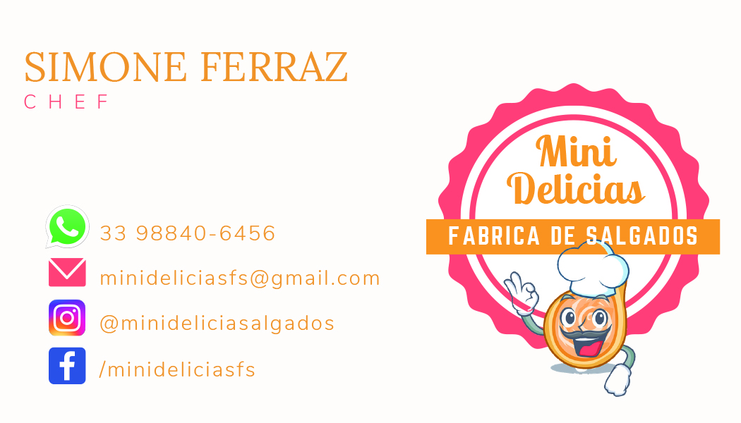 Parceiros FÁBRICA DE SALGADOS MINI DELÍCIAS – SIMONE FERRAZ 26 de fevereiro de 202127 de fevereiro de 2021 admin 0 Comentário