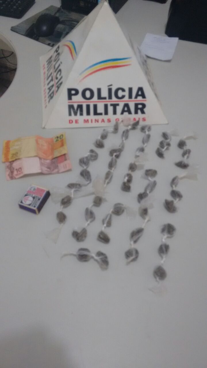 A Polícia Militar conseguiu cerca-los, e ao proceder uma busca por onde os suspeitos haviam passado, encontrou uma embalagem contendo 17 buchas de maconha. W. B. O., 19, segundo consta do Boletim de Ocorrência, assumiu a propriedade das drogas, e que o adolescente seria o destinatário, para que as vendesse. As drogas seria vendidas por R$ 10, 00 a bucha.