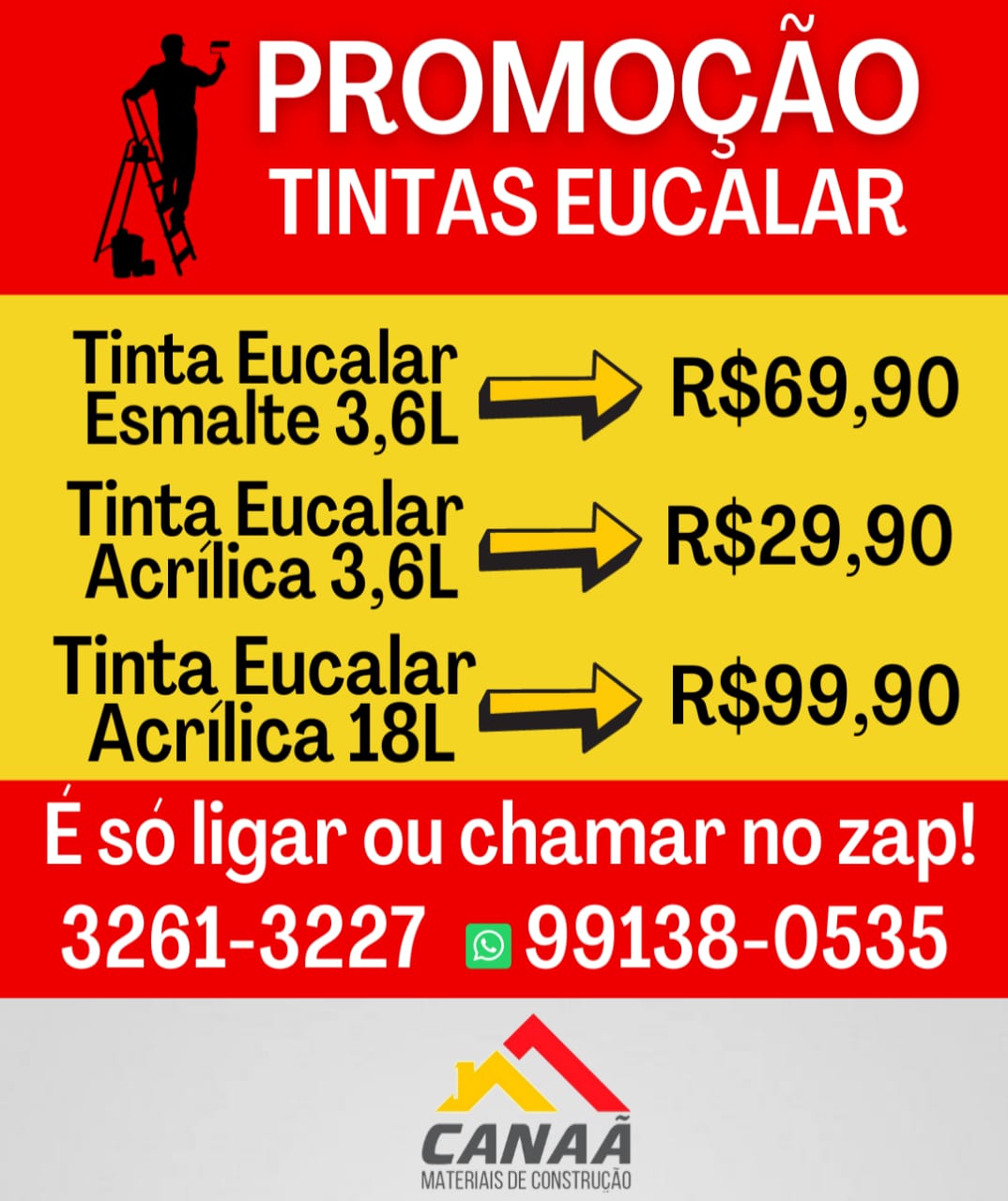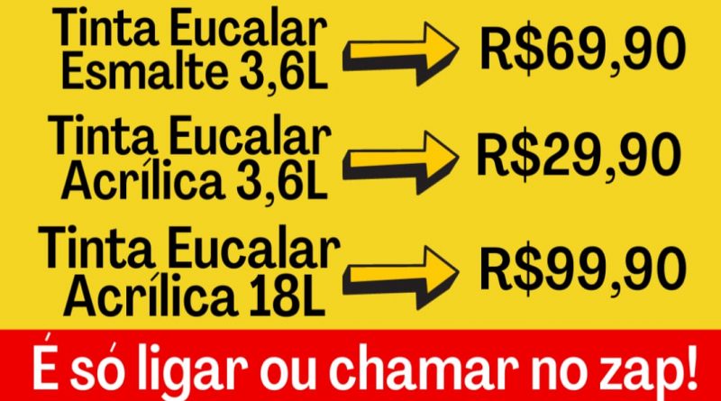 Parceiros PROMOÇÃO DE TINTAS EUCALAR NO CANAÃ MATERIAS DE CONSTRUÇÃO- APROVEITE ! (33)99138-0535 26 de abril de 2021 admin 0 Comentário