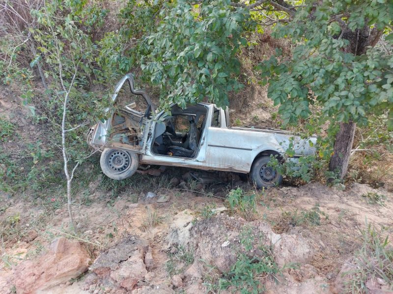 Quando os militares da Polícia Militar Rodoviária chegaram ao locam, encontraram a vítima Lorran X. da Costa, já sem vida, fora do veículo que estava estava capotado em meio a um barranco em um pasto as margens da rodovia.