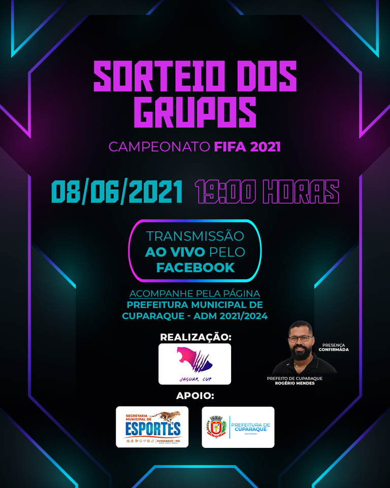 PREFEITURA DE CUPARAQUE INFORMA: ACOMPANHE O SORTEIO DOS GRUPOS DO CAMPEONATO JAGUAR CUP – Live a partir das 19h00min