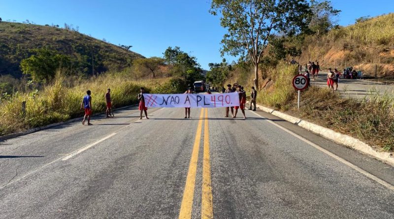 A manifestação é contra a aprovação do Projeto de Lei 490, que tramita no Congresso Nacional