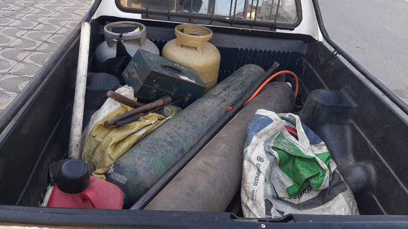 Os militares faziam uma Batida Policial pela madrugada no Distrito quando abordaram 02 veículos suspeitos: uma Parati Verde com um reboque e uma Saveiro de cor branca. No reboque de um dos veículos foram encontrados diversos pedaços de trilho de ferrovia e na carroceria do segundo veículo, dois maçaricos, dois cilindros de oxigênio, dois botijões de gás e diversas ferramentas, assim como 02 rádios comunicadores.