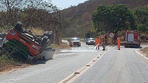O motorista, Geiferson Silva, 40, teve ferimentos leves e foi socorrido pela viatura para o hospital da cidade. Ele relatou aos militares que ao descer a serra tentou reposicionar as marchas do veículo, o cambio passou a não responder, ficando o veículo na marcha neutra, e mesmo utilizando os freios, não foram suficientes, para parar o caminhão, e havendo vários veículos à sua frente, entrou na contramão do trevo e tombou fora da pista.