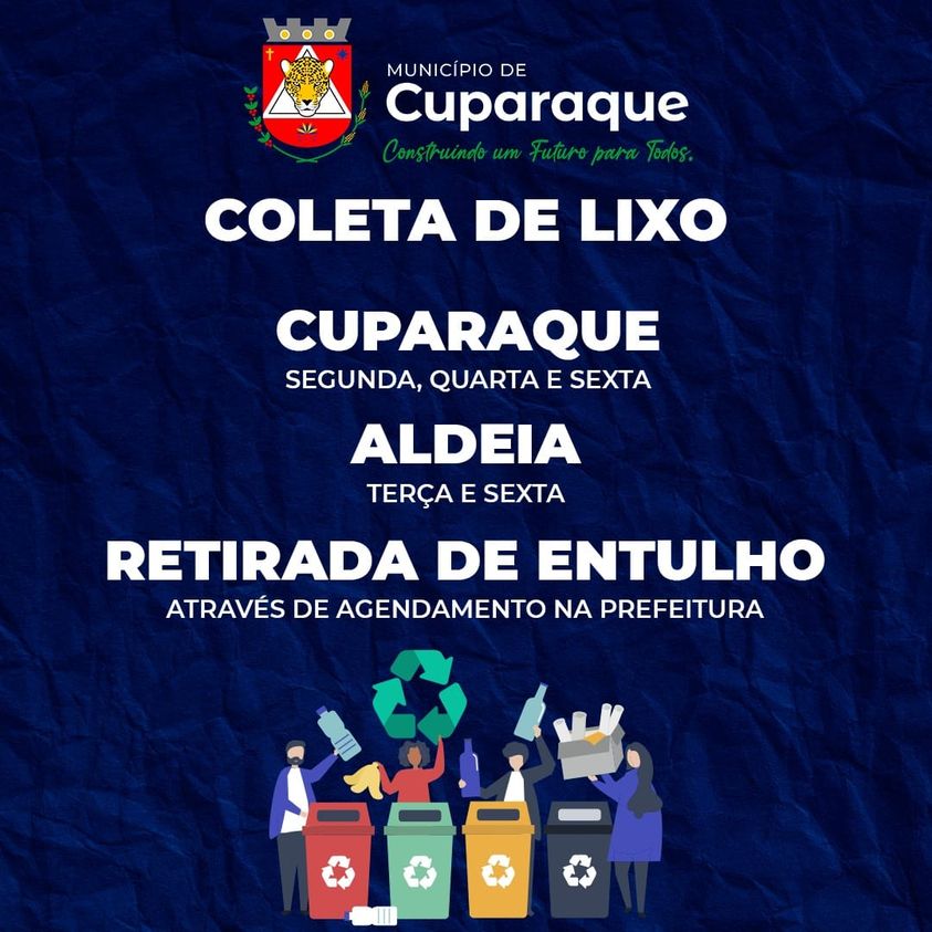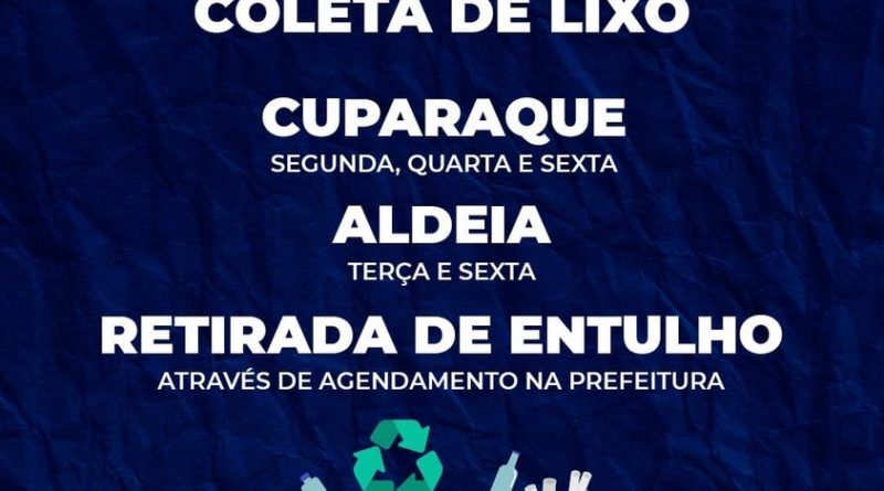 INFORMATIVO PREFEITURA DE CUPARAQUE – Coleta de lixo e retirada de entulhos tem dia e programação- fique ligado !