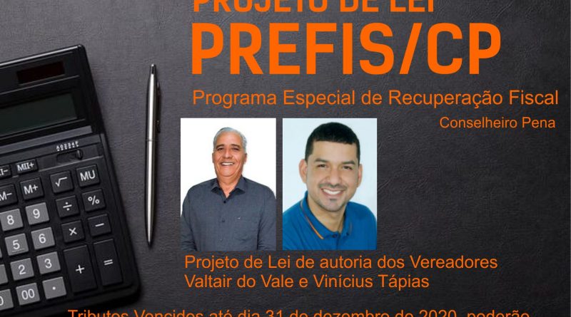 Conselheiro Pena – Um projeto de Lei apresentado na Câmara na última semana, pelos vereadores Valtair do Vale e Vinícius Tápias, institui o Programa Especial de Recuperação Fiscal do Município – Se aprovado, pessoas físicas ou jurídicas – poderão quitar dívidas com anistia de até 100% de juros e multa. O Programa Especial de Recuperação Fiscal (PERFIS/CP) é voltado principalmente a quem tiver débito inscrito na Dívida Ativa do município.
