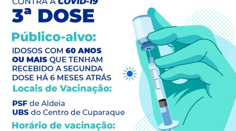 CUPARAQUE COMEÇA A VACINAR 3.ª DOSE CONTRA COVID EM IDOSOS COM MAIS DE 60 ANOS