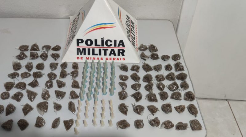 Santa Rita do Itueto – 86 buchas de maconha e 54 pinos de cocaína forma apreendidas na manhã de 29/09, em uma Pedreira, no córrego Bananal, zona rural de Santa Rita do Itueto.