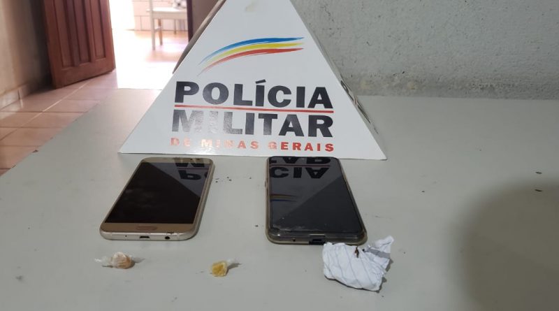 Ambos foram encaminhados para a Delegacia de Polícia juntamente com as drogas e os celulares.