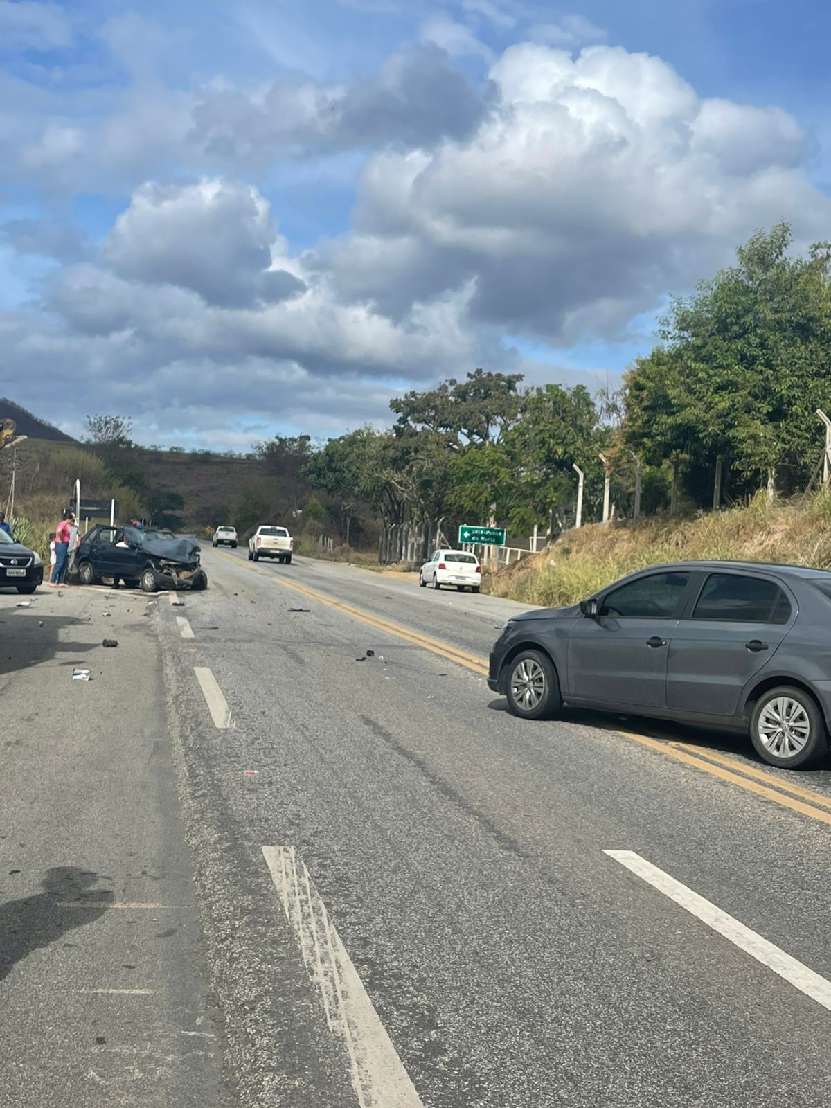 O veículo Fiat Uno, conduzido por Sebastião L. S., 57, saía do trevo vindo da vila de Penha do Norte quanto entrou na rodovia, momento que foi colidido por um Voyage que vinha pela BR.