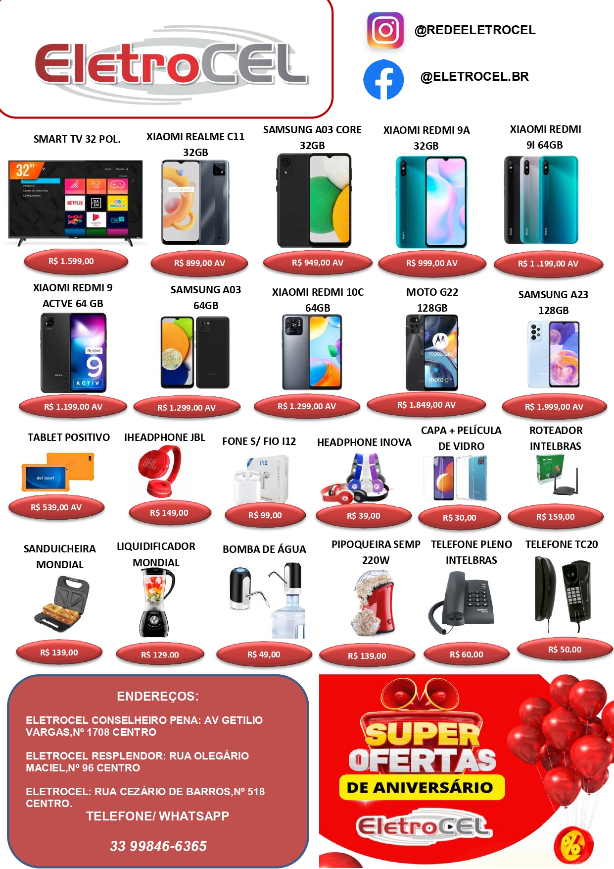 Parceiros SUPER OFERTAS DE ANIVERSÁRIO NA ELETROCEL – CONFIRA !! APARELHOS CELULARES, SMARTPHONES E ELETRODOMÉSTICOS 9 de setembro de 20229 de setembro de 2022 admin 0 Comentário