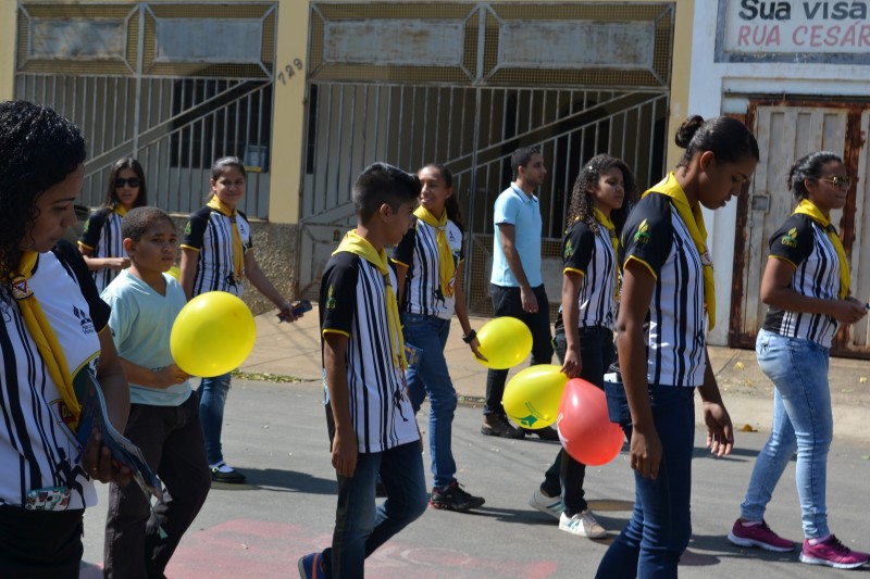 Após as apresentações e as palestras, as crianças saíram em passeata pelas ruas da cidade, afim de mobilizarem a todos sobre o consumo do álcool dentro de casa.