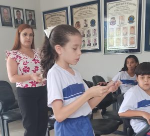 As crianças foram recepcionadas pelo próprio presidente, vereador Liosa Marques – Republicanos, e pelo assessor jurídico Edson Antônio Demétrio, que explicou aos estudantes como são criados os projetos de lei e como se dá sua tramitação até a transformação em lei municipal. Ele também falou sobre as funções e o trabalho dos vereadores e respondeu a perguntas das crianças, como “o que uma pessoa tem de ser para se tornar vereador?”