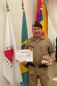 ” Ao ser homenageado, a palavra que vem em meu coração é gratidão, a Deus por todas as bençãos e livramentos durante o ano. E gostaria de dividir com meus filhos Andreia e Henrique, a minha noiva Maria, a minha família e amigos, aos irmãos de farda, pois sem eles não teria alcançado o primeiro lugar e a sociedade de Resplendor que apoia e reconhece nosso trabalho. Receber esta homenagem só vem mostrar que todo esforço e dedicação em cada ocorrência e trabalho social valeu a pena. A Deus toda honra e toda glória.” finalizou.