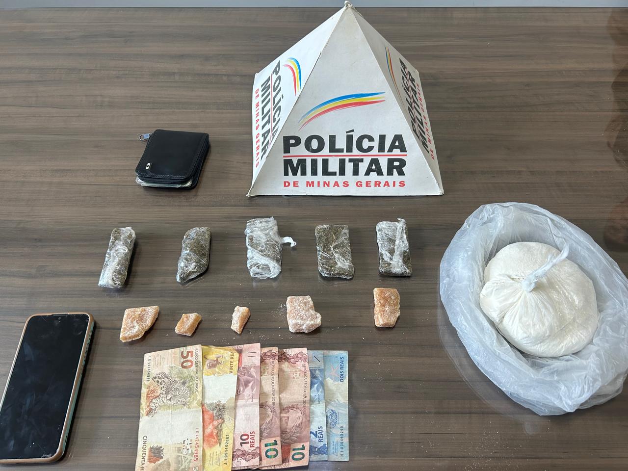 Segundo informou a PM, o suspeito, R.T.S., desembarcou do trem da Vale na estação ferroviária da cidade, em atitudes suspeitas, quando foi abordado, sendo encontrado em sua posse, 01 porção de cocaína, 05 tabletes de maconha, 5 porções de pedras de crack. Também foi apreendido o aparelho celular do suspeito, que a polícia acredita conter informações sobre o tráfico, e ainda R$ 104,00