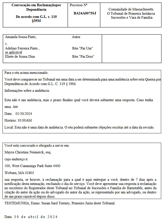 Notícias CONVOCAÇÃO EM RECLAMAÇÃO POR DEPENDÊNCIA – TRIBUNAL DE PRIMEIRA INSTÂNCIA E SUCESSOES DE VARA DE FAMÍLIA – MASSACHUSETTS 30 de abril de 202411 de maio de 2024 admin 0 Comentário