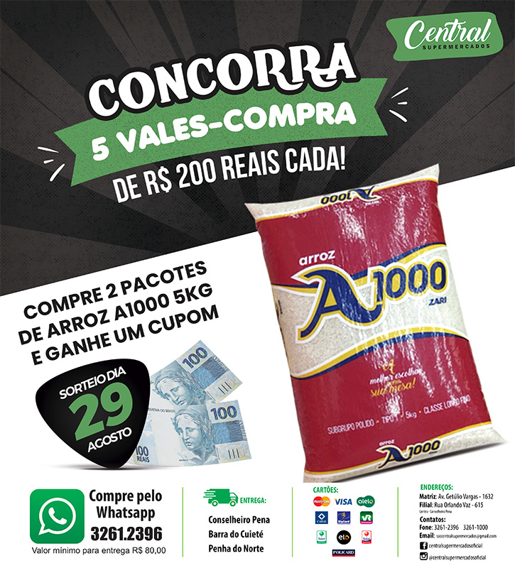Notícias NO CENTRAL SUPERMERCADOS VOCÊ COMPRANDO 2 SACOLAS DE ARROZ A1000 5KG, VOCÊ CONCORRE 5 VALES COMPRAS DE R$ 200,00 CADA. 12 de agosto de 202512 de agosto de 2025 admin 0 Comentário