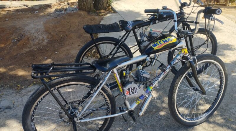 Procedida a abordagem, foi constatado que se tratavam de bicicletas com motores acoplados – uma de cor preta e outra prata, com quadro de mountain bike.