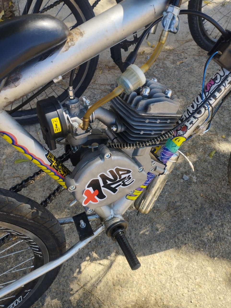 O veículo apreendido possuía um motor de combustão sem número de identificação ou certificação do INMETRO, acoplado ao quadro de uma bicicleta comum. O motor era movido por uma mistura de combustível (semelhante a gasolina e óleo), também sem certificação ou selo ambiental afixados.