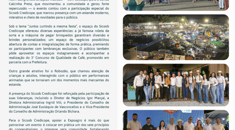 Notícias Parceiros SICOOB CREDICOPE É DESTAQUE NA 43.ª EXPOAGRO DE CONSELHEIRO PENA 9 de outubro de 2025 admin 0 Comentário