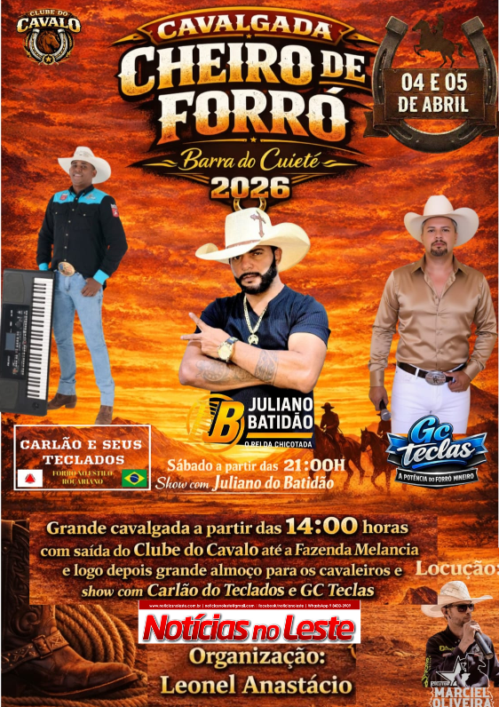 Colaboradores Notícias Parceiros CAVALGADA: CHEIRO DE FORRO, BARRA DO CUIETÉ. 31 de março de 202631 de março de 2026 admin 0 Comentário