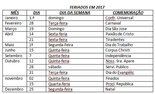 2017 SERÁ O ANO DOS FERIADOS PROLONGADOS