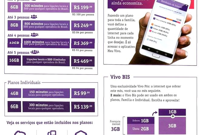 Plano família, ligações e SMS locais e DDD ilimitadas para qualquer lugar do Brasil, alem de 16 GB de internet para você usar como quiser, com a vantagem do VIVO bis, a internet que sobra acumula para o próximo mês.