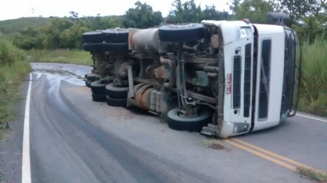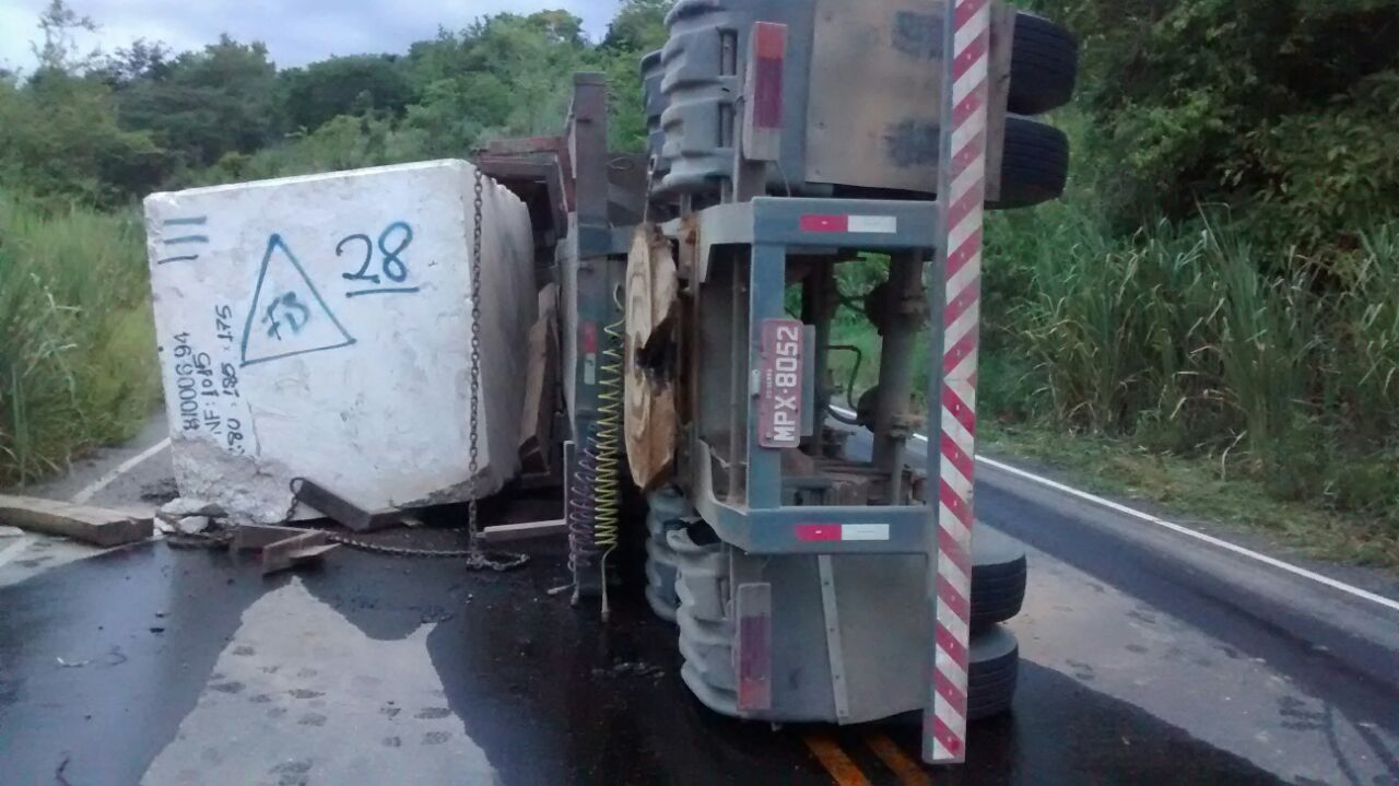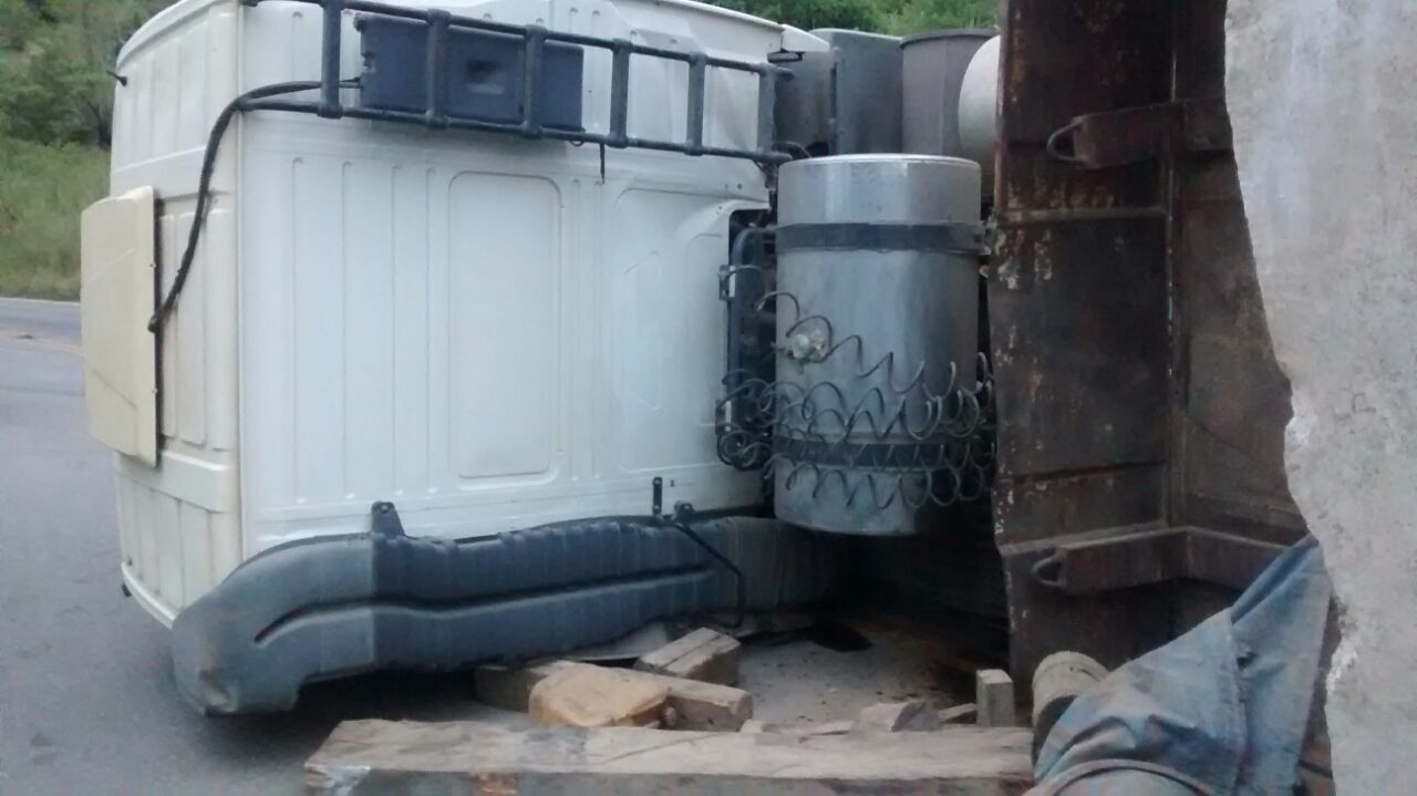 Segundo o condutor da carreta, Marcelo A. Domingos, 34, seguia de Goiabeira para Vitória-ES, e no local do acidente, sentiu que o veículo puxava para o lado esquerdo e em seguida veio a tombar .