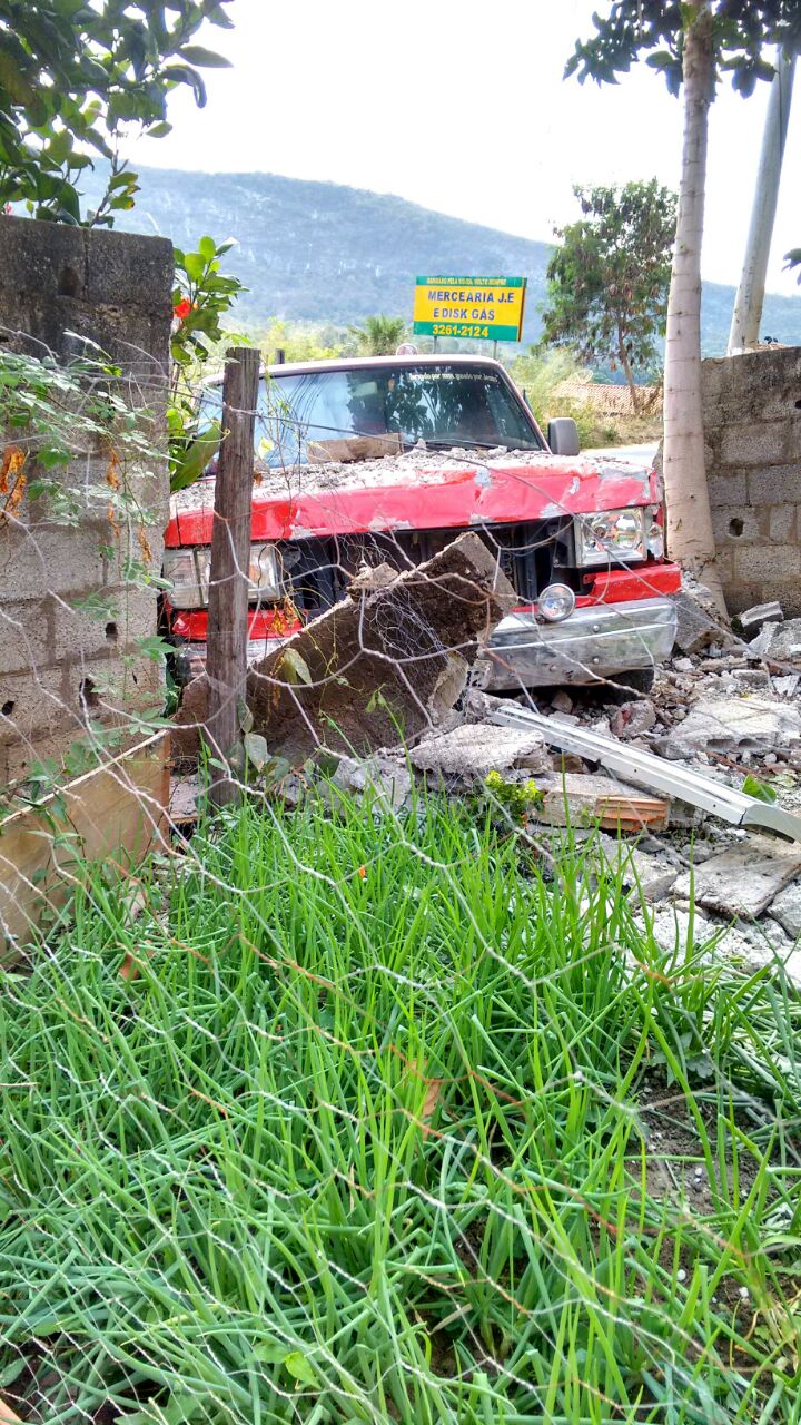 Segundo o condutor da caminhonete, Sr. Sebastião Ferreira de Oliveira, este entrava na cidade quando o veículo que estava a sua frente freou bruscamente para passar por um quebra-molas e para não atingir o veículo, desviou saindo da rua e atingindo um muro de uma residência próximo.