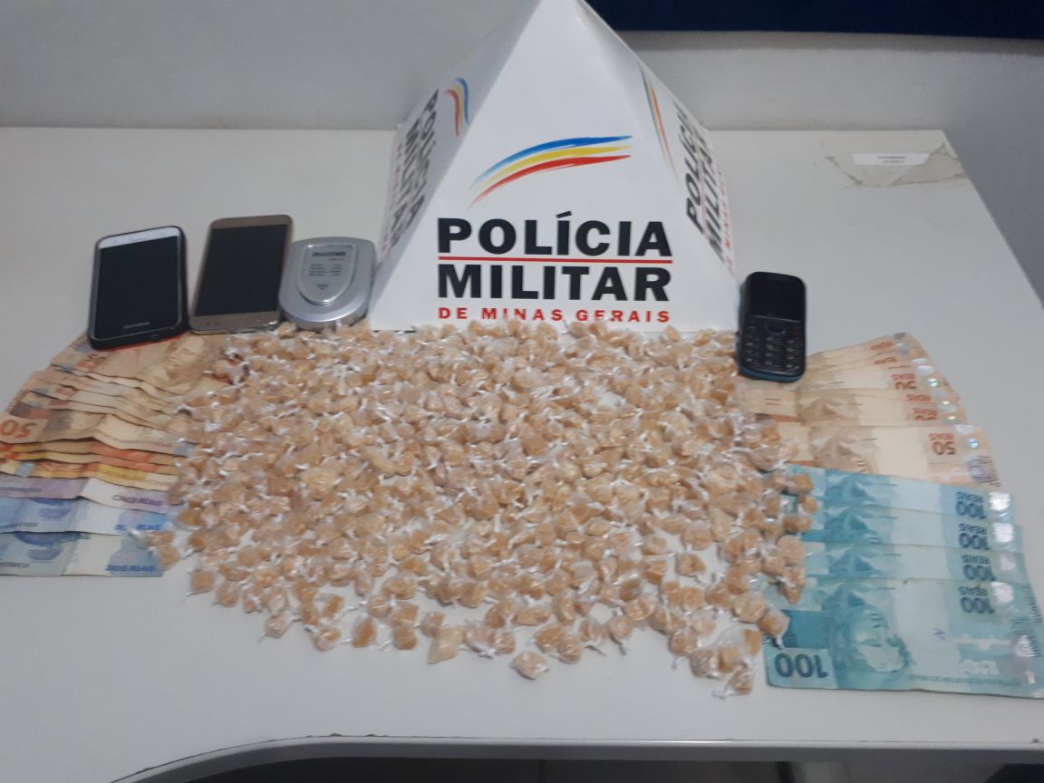 Na casa de A. M., os militares encontraram 436 pedras de crack, fracionadas e prontas para serem comercializadas, também foi apreendido a quantia de R$ 950,00 que seria produto da venda da droga, 01 balança de precisão, usada para pesar as drogas, e varias sacolas plásticas usadas na embalar as pedras de crack.